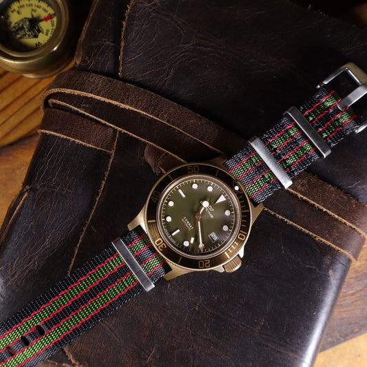 Equip your watch with our comfortable and secure NATO/G10-inspired nylon watch straps, suitable in and out of the water, perfect for a night out... ready for any occasion.