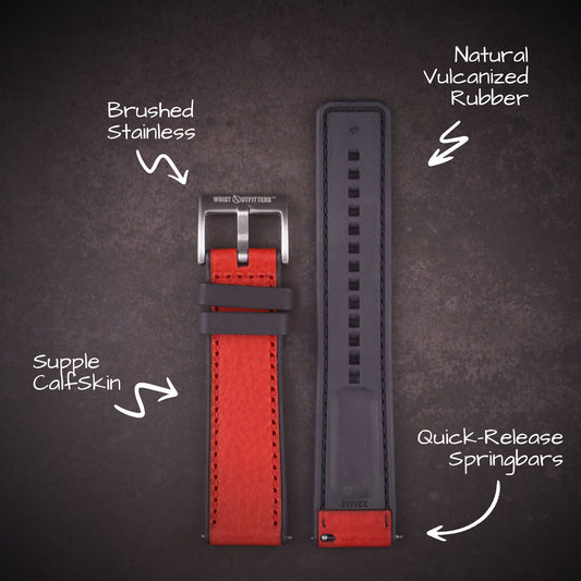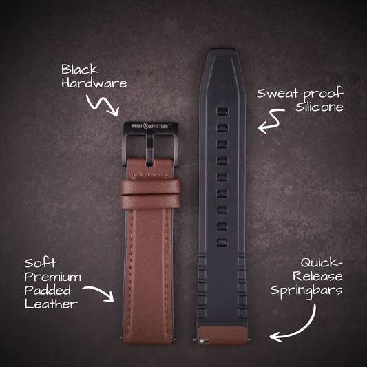 My new watch, a Redwood "Pilot Type B - Stealth" a throwback dedicated to fighter pilots of WW II. The supplied band was too long and I needed something that was classic and would match the watch. Presto!! The Aviator Vintage Leather Pilot Watch Band was a perfect fit!! Old school styling with rugged, finished leather, great color and a beautiful match. Love the combo!! Shipping was fast and on time...couldn't be happier
