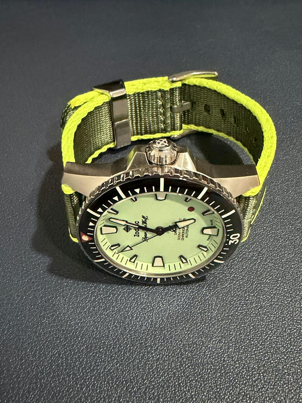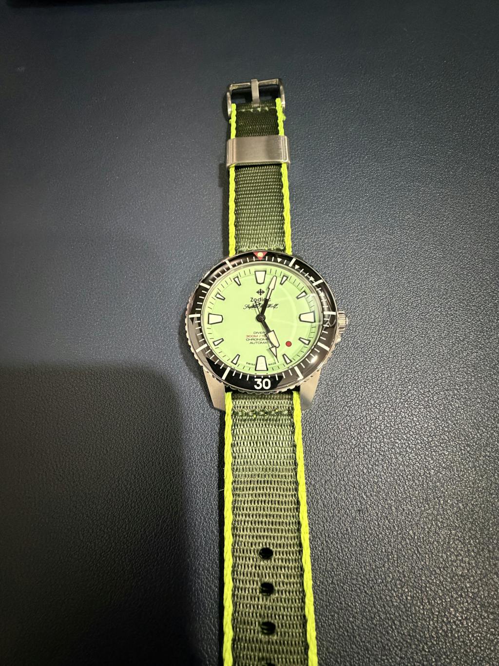 This is a very nice strap and goes great with my Zodiac Super Sea Wolf diver watch with pistachio dial. I love that it’s thick but still very soft and flexible. Can’t wait to pick up a few other colors and don’t be shy with the palate. I also have a pink zodiac as well hint hint👍🏻